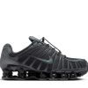 The Nike Shox TL takes mechanical cushioning to the next level. This reimagined version of the 2003 icon features breathable mesh on the upper and Nike Shox technology throughout the sole for optimal comfort and a bold urban look. Nike Shox technology combines resilient. flexible columns with moderating plates for exceptional cushioning that compresses and springs back. The design is nearly an exact reproduction of the 2003 Shox TL. Molded midfoot overlays provide support and precise fit. while a TPU heel plate ensures lateral stability and additional support.